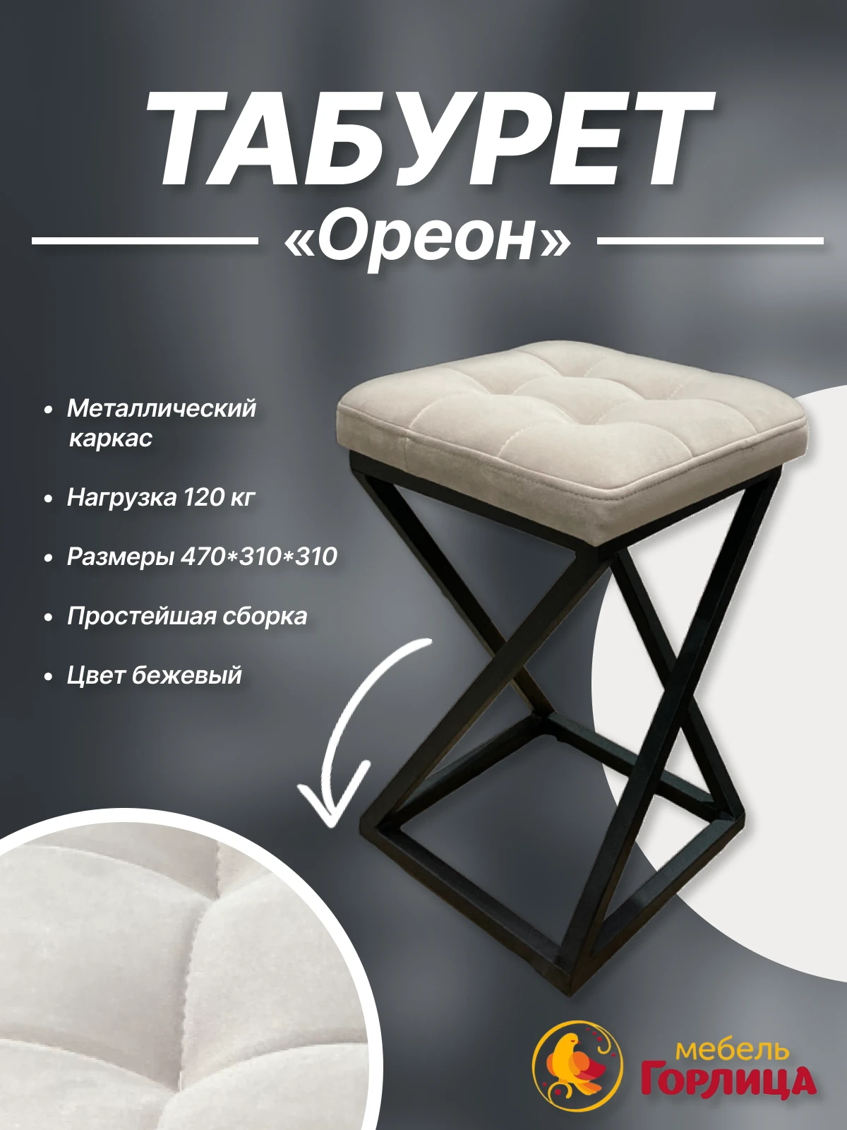 Необычный каркас табурета Орион выполнен из долговечной металлической трубы и обработан порошковой краской. Сиденье выполнено из ткани-велюр. Табурет необходимый предмет мебели для любой квартиры, дома, дачи и бани. Табурет на металлическом каркасе очень удобный, устойчивый. Табурет можно использовать как барный стул. Табуретка для кухни впишется в любой интерьер кухни от лофта до классики, а так же подойдет в качестве мебели для кафе или бара. Мягкое сиденье добавит комфорта и вы будете наслаждаться чаепитием с удовольствием. Так же табурет можно использовать как банкетку для прихожей, гостиной, спальни. Идеально займет место на балконе и украсит его. Табурет выдерживает большие нагрузки за счет металлического корпуса.