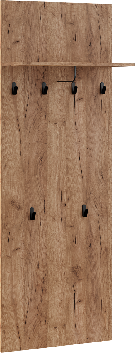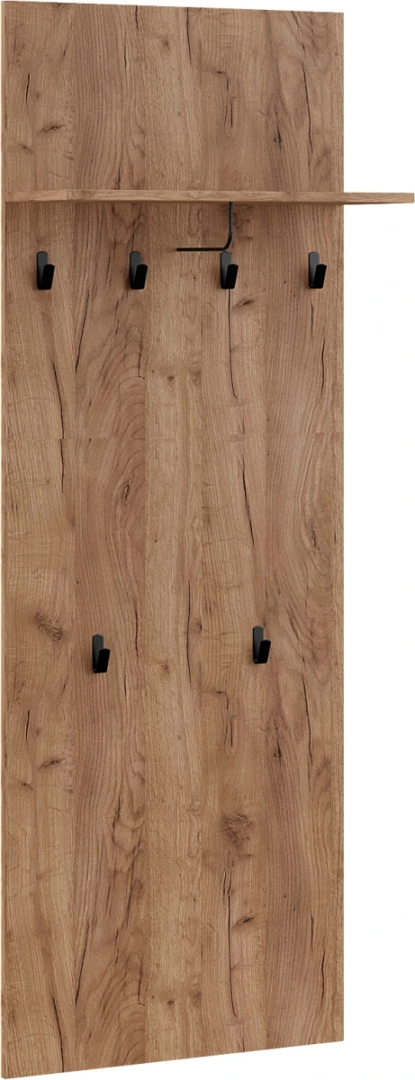 Настенная вешалка Адель украсит обстановку прихожей и сделает ее уютнее. Высокая панель в древесном декоре дополнена двумя рядами крючков, на которых можно разместить одежду любой длины.