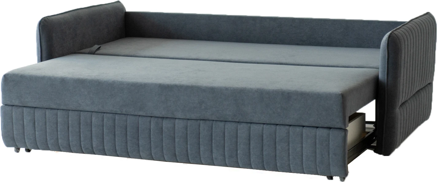 Механизм трансформации «Тройной выкатной на металлокаркасе» прост и надежен, что делает его идеальным для ежедневного использования. Основой дивана служит эксклюзивная высокопрочная конструкция на основе металлического каркаса из холоднокатаной стали, дополненная ребрами жесткости в местах с максимальной нагрузкой. Металлокаркас не подвержен коррозии и негативным воздействиям перепадов температуры и повышенной влажности.