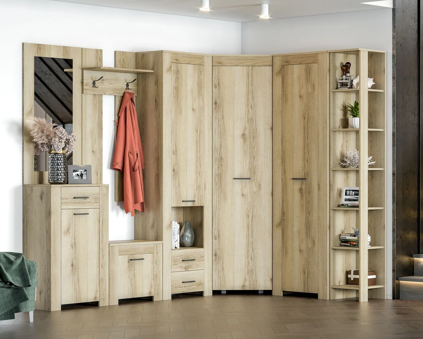 Распашной шкаф Квадро незаменим для хранения одежды в сложенном виде. Полки позволят разложить вещи по категориям и тратить меньше времени на их поиск. Высокая, не широкая модель — идеальный вариант для небольшой прихожей или комнаты.