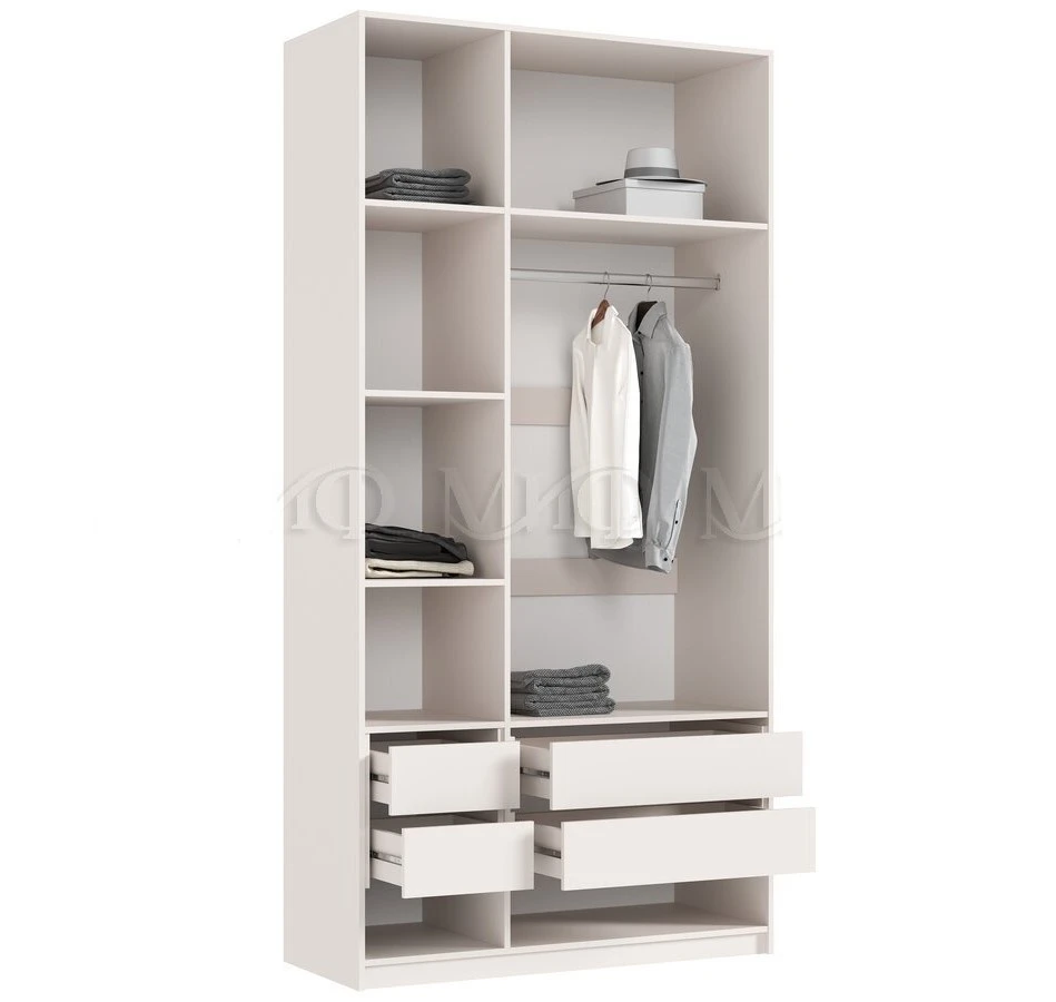Внутреннее пространство шкафа продумано до мелочей. Он оснащен удобными полками, которые позволяют разместить обувь, белье или аксессуары.