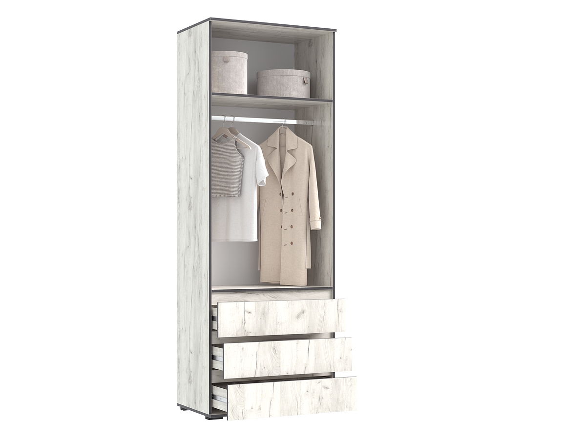 Распашной шкаф Норд-М гармонично дополнит систему хранения в спальне. Внутреннее пространство представлено вместительной нишей с продольной штангой для вешалок и широкой антресольной полкой.