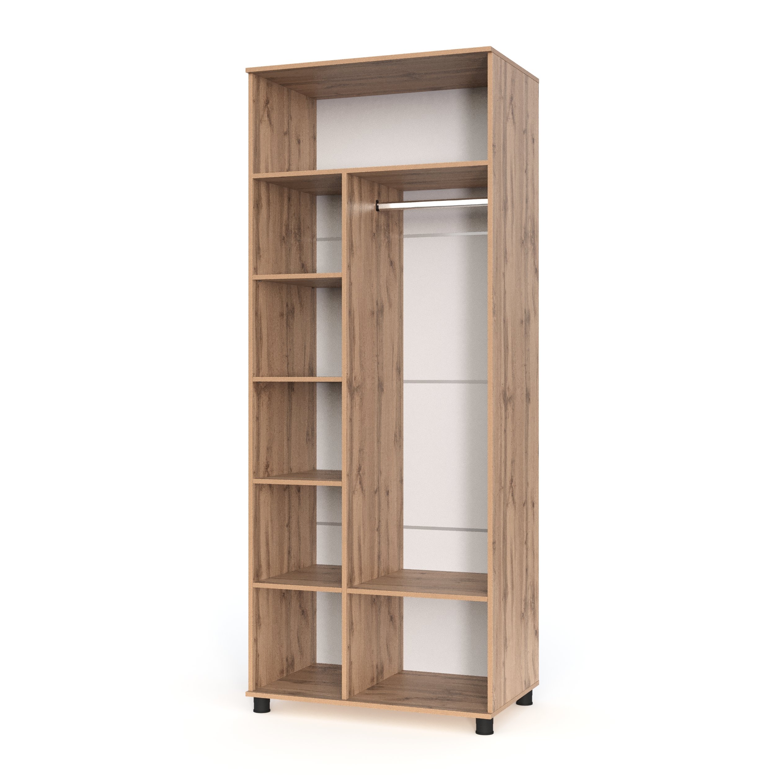 Распашной шкаф Ривьера позволит аккуратно хранить гардероб и гармонично дополнит современный интерьер. Внутреннее наполнение представлено вместительным отделением со штангой для вешалок, рядом полок для сложенной одежды и антресольной нишей для сезонных вещей.