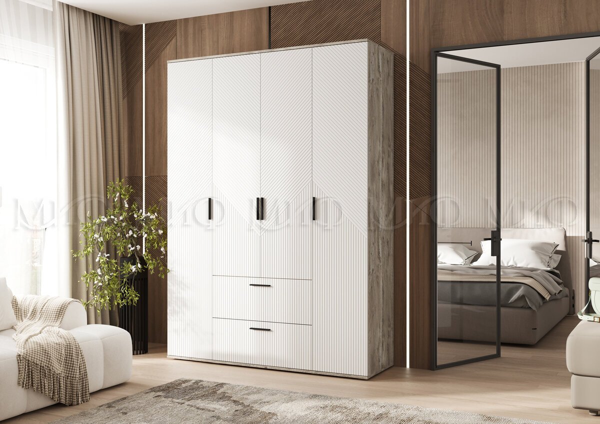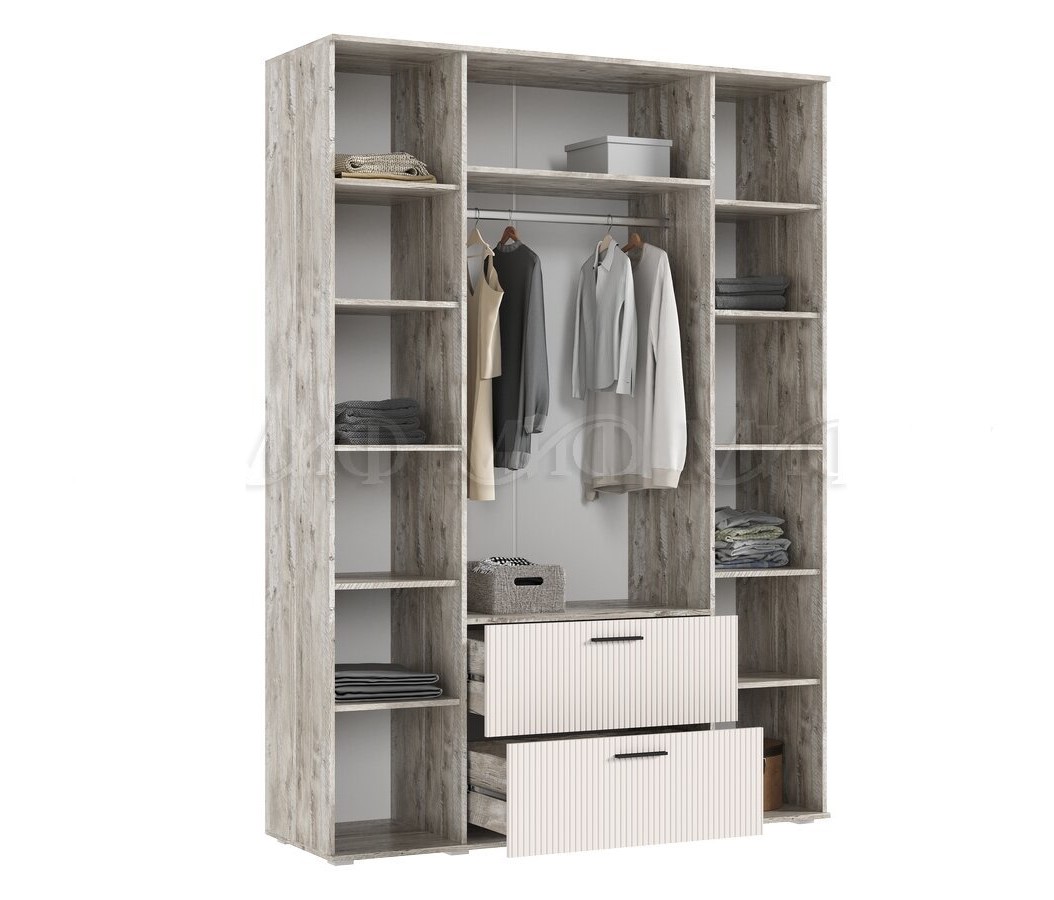 Шкаф 4-х створчатый (1600) Сильвия — это идеальное решение для организации вашего гардероба. Центральная штанга позволяет удобно разместить верхнюю одежду и платья, сохраняя их безупречный вид. Глубокие ящики идеально подходят для хранения свитеров, постельного белья или аксессуаров, обеспечивая порядок и легкий доступ к вашим вещам.