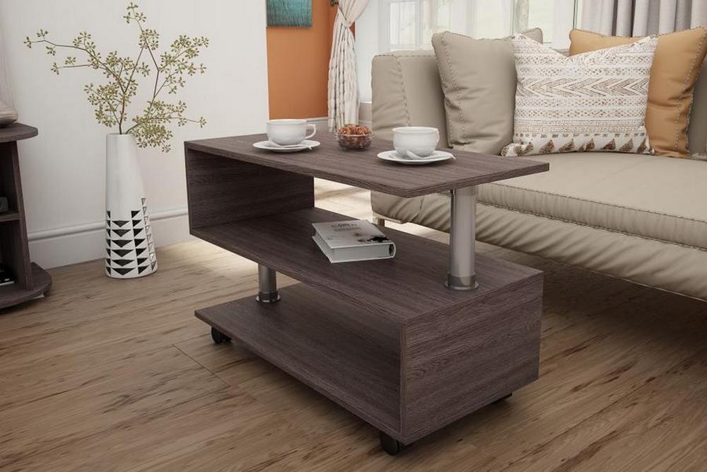 Журнальный столик — компактная и одновременно функциональная модель, которая будет удачно смотреться в любом интерьере. Несколько открытых ниш позволят организовать упорядоченную систему хранения всевозможных мелочей. Столик оборудован поворотными колесиками для удобного перемещения