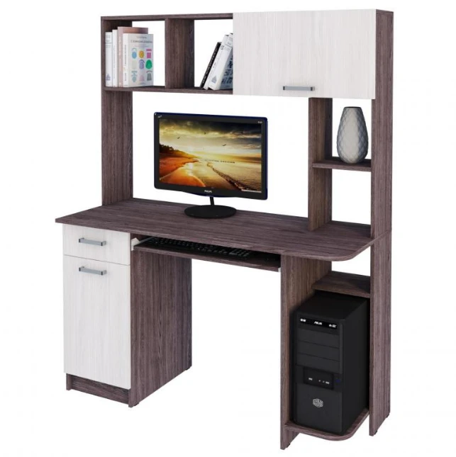 Компьютерный стол КС-14 — отличное решение для домашнего офиса. Выдвижной ящик, открытые и закрытые ниши позволяют удобно расположить книги, тетради, канцелярские принадлежности и другие вещи.