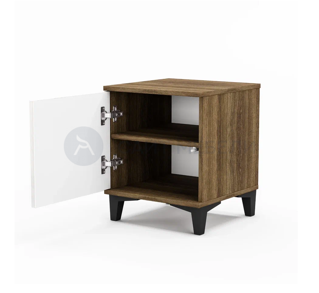 Тумба прикроватная Палау с корпусом в натуральном древесном оттенке — табак и фрезерованным фасадом — белый софт станет стильным и функциональным дополнением спальни.