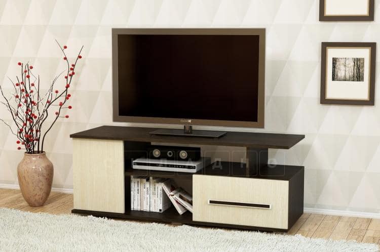 ТВ-тумба Лидер-4-имеет приятный простой дизайн, благодаря которому модель будет соответствовать любому интерьеру. Тумба не только эргономична, но и функциональна: верхняя полка служит вместительной нишей для телевизора с любой диагональю экрана. Нижний отсек представляет из себя ящичек, полочки для хранения вещей, которые удобно держать под рукой.