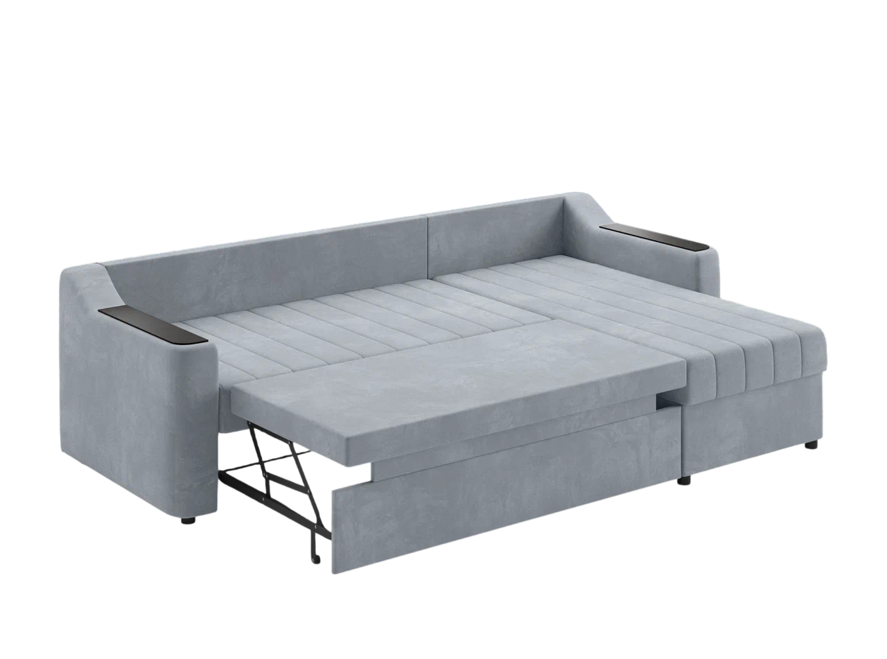Этот угловой диван — не просто предмет мебели, а центральный элемент интерьера, где гармонично сочетаются эстетика, комфорт и функциональность. Бархатистая фактура велюра придаёт модели благородный, почти аристократичный облик, превращая обычный вечер в атмосфере домашнего тепла в маленькое торжество стиля.